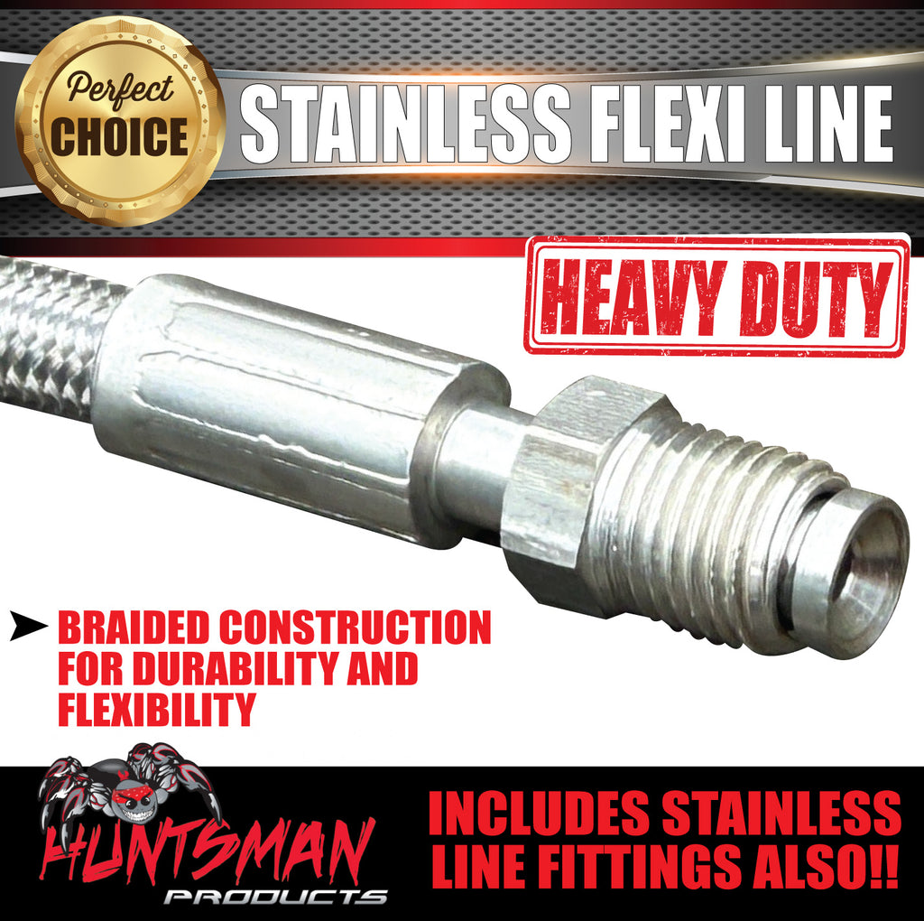 1x 550mm Trailer Hydraulic Brake Braided Stainless Steel Flexi Line 3/8" Fittings